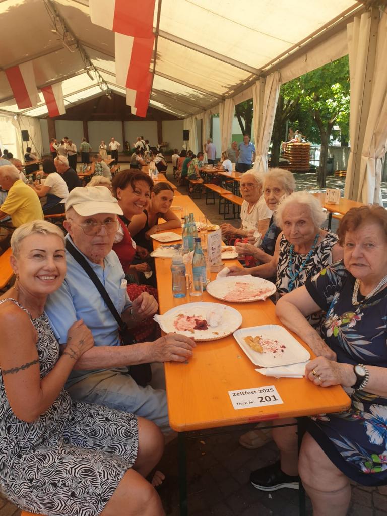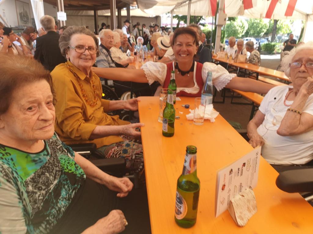 Schon am Vormittag haben wir gemeinsam einige unserer Bewohner „zusammengetrommelt“, die sich auf den Ausflug freuten. Dann ging es zu Fuß in Richtung Festplatz – das Stück war nicht weit, aber bei strahlendem Sonnenschein und sommerlichen Temperaturen kamen wir trotzdem ein wenig ins Schwitzen.
